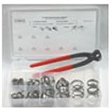 | Hose Clamp Assortment, Stepless 1 Ear, Stainless Steel, Plain Finish, Number of Pieces 81, Number of Sizes 8, Includes 10 Each of 1/2, 9/16, 5/8, 23/32, 7/8, 1, 1 1/8, 1 1/4 In, Standard Jaw Pincer, and Plastic Case ...Read